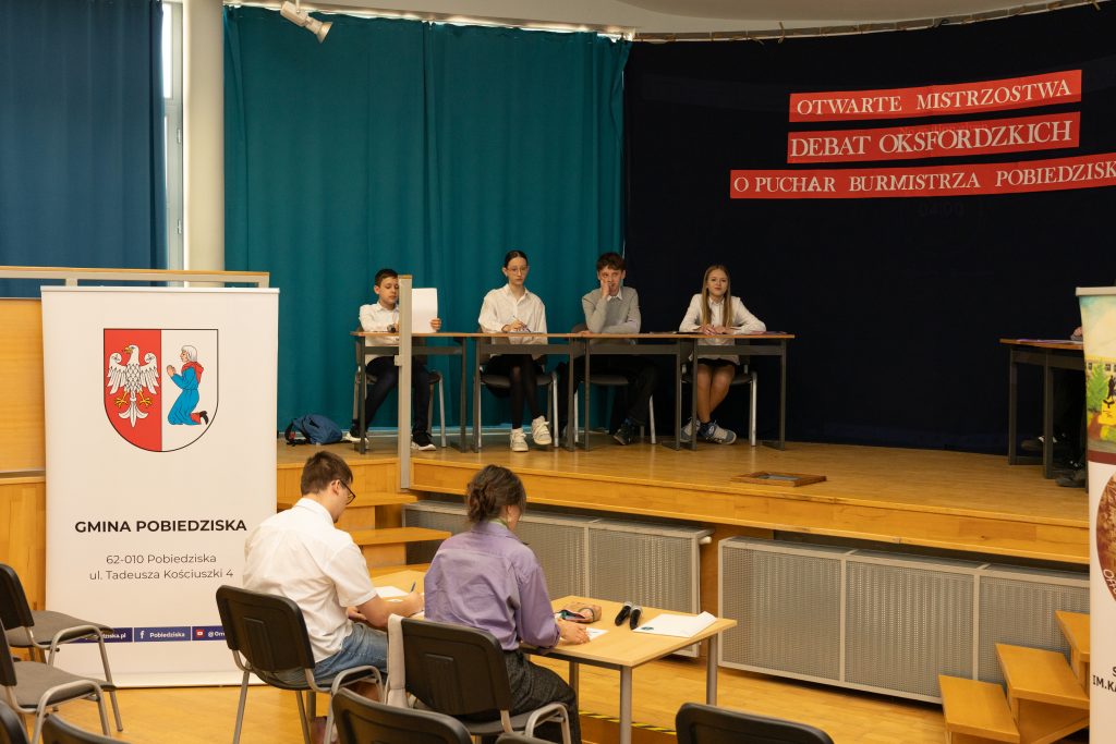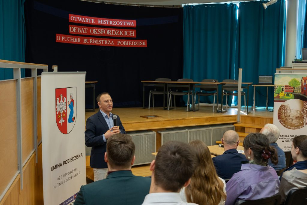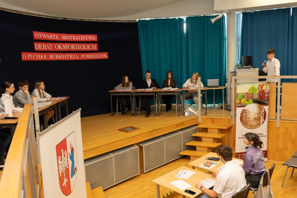 3 marca w naszej szkole odbył się pierwszy etap Otwartych Mistrzostw Debat Oksfordzkich o Puchar Burmistrza Pobiedzisk. Była to już trzecia edycja tego wydarzenia – a zarazem druga organizowana pod patronatem Burmistrza Pobiedzisk – co potwierdza, że debaty na stałe wpisały się w kalendarz najważniejszych inicjatyw edukacyjnych naszej placówki. Wydarzenie swoją obecnością uświetnili zaproszeni goście i przedstawiciele władz lokalnych, podkreślając rangę przedsięwzięcia oraz jego znaczenie dla rozwoju kompetencji obywatelskich młodzieży.